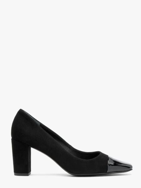 Czarne Czółenka z Wkładką z Imitacji Skóry na Słupku z Kwadratowym Noskiem Menniana