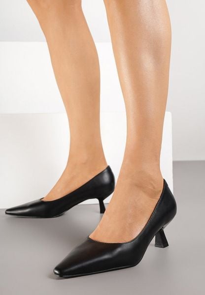 Czarne Czółenka Vices na Obcasie Typu Kaczuszka ze Skórzaną Wkładką Naliove