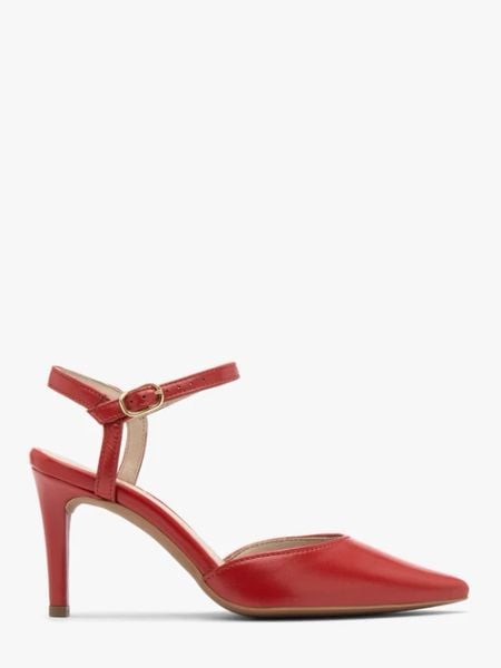 Czerwone czółenka z odkrytą piętą z linii RYŁKO.Model wykonany z najwyższej jakości skóry licowej.Podszewka i wyściółka skórzana.Szpilka oblekana o wysokości 8,5 cm.Wysokość obcasa uśredniona dla rozmiaru 37.Nosek w szpic.But posiada ozdobną klamerkę w kolorze złotym.Dystrybutor: Brawo Sp. z o.o. ul. Dworcowa 19, 34-130 Kalwaria Zebrzydowska; [email protected] pochodzenia: POLSKA