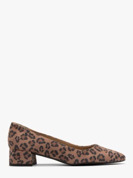Brązowe Czółenka na Słupku w Klasycznym Stylu Ozdobione Wzorem w Panterkę Zeianae