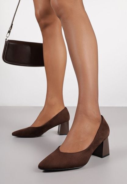 Brązowe Czółenka Vices na Geometrycznym Obcasie ze Skórzaną Wkładką Critissa