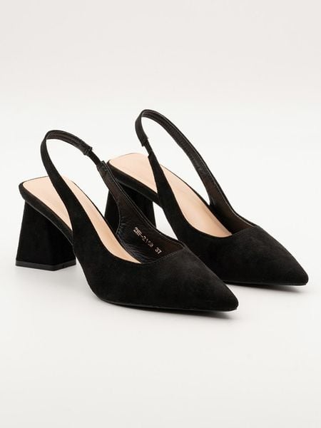 – zapięcie: sprzączka- noski: w szpic- forma obcasa: blokowy- podeszwa: antypoślizgowa