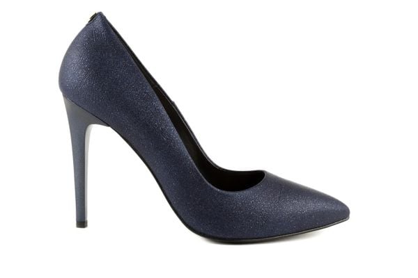 Czółenka wykonane ze skóry naturalnej. Zdobione brokatem.Wyściółka oraz miękkie wkładki wykonane ze skóry naturalnej poprawią komfort podczas użytkowania. Lakierowane zdobione obcasy sprawiają dodają modelowi szyku i elegancji. Obuwie jest lekkie i wygodne. Połączenie klasycznego fasonu oraz granatu pozwoliło uzyskać atrakcyjną, wyjątkowo kobiecą całość.