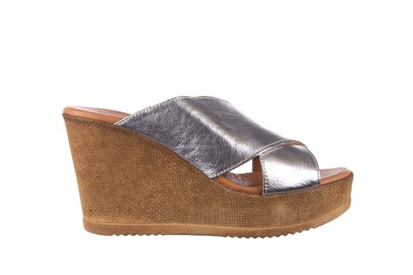 Koturny marki Bayla wykonane ze skóry naturalnej licowej w kolorze srebrnym- metalizowane.Wkładka wykonana ze skóry naturalnej w kolorze brązowym, niezwykle miękkie. Dwa grube pasy przechodzące przez stopę w literę X. Podeszwa o właściwościach antypoślizgowych. Bardzo miękka skóra, która dopasowywuje się do kształtu stopy. Buty idealnie sprawdzą się podczas ciepłych, letnich dni.Wysokość koturna: 9 cm Długość […]