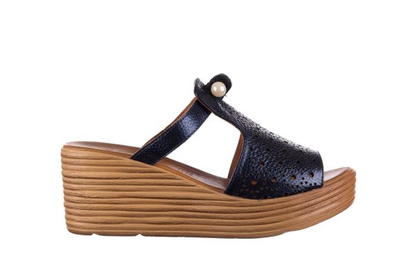 Koturny marki Bayla wykonane ze skóry naturalnej w kolorze granatowym.Wkładka wykonana ze skóry naturalnej w kolorze brązowym. Cholewka dzięki małym dziurką jest oddychająca. Podeszwa o właściwościach antypoślizgowych. Bardzo miękka skóra, która dopasowywuje się do kształtu stopy. Buty idealnie sprawdzą się podczas ciepłych, letnich dni.Długość wkładki dla rozm. 38: 23 cmWysokość koturna: 7 cmKolor metali: złoty