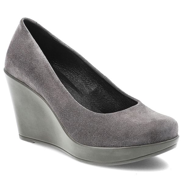 Czółenka damskie Karino, na wysokim koturnie eleganckie skórzane zamszowe wygodne z okrągłym noskiem, szare, 1224-002-P