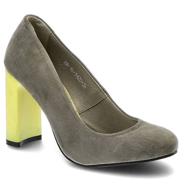 Czółenka damskie Karino, naturalny zamsz na wysokim żółtym słupku, szare, 1420-002-P