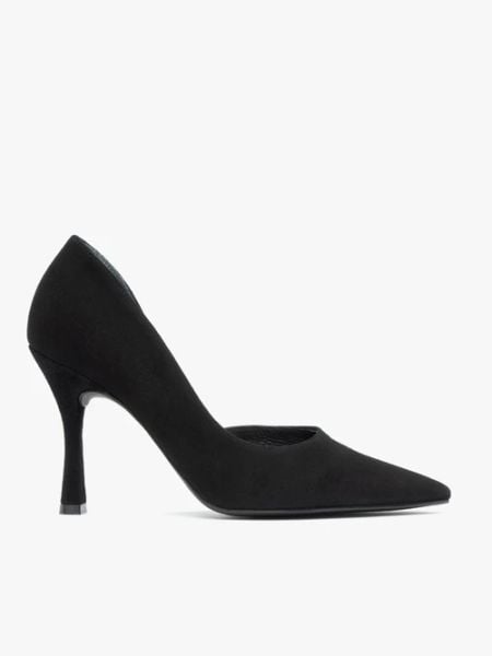 Czarne welurowe czółenka na obcasie flare