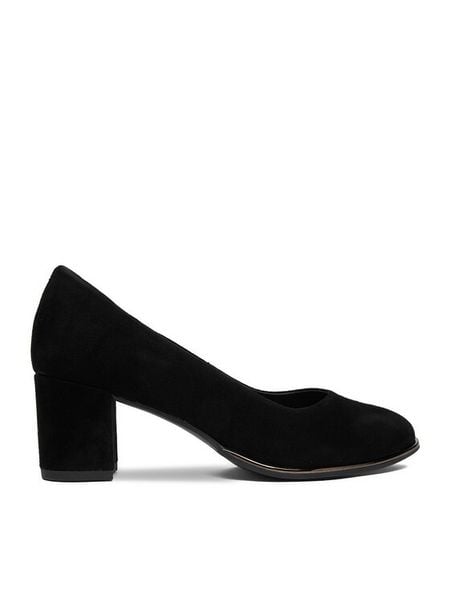 Czarne zamszowe skórzane Polskie czółenka damskie na słupku Prestige 2105 OBLP