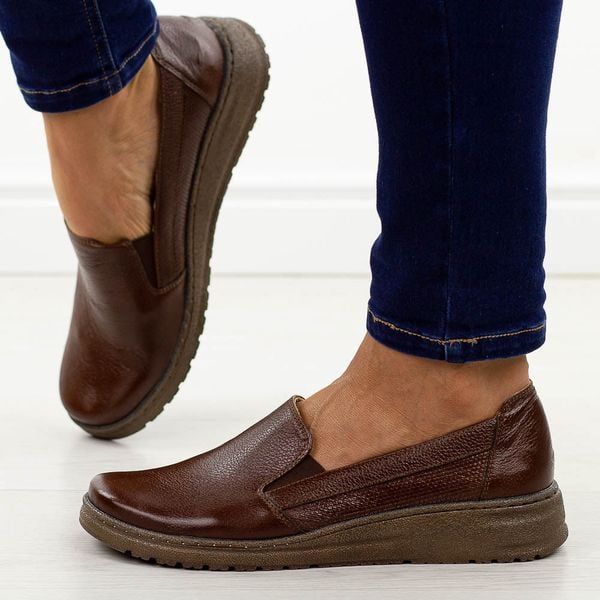 Brązowe skórzane Polskie półbuty damskie na koturnie Deoni D028