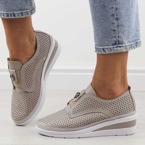 Skórzane półbuty damskie sportowe na koturnie ażurowe szare T.Sokolski W26-150
