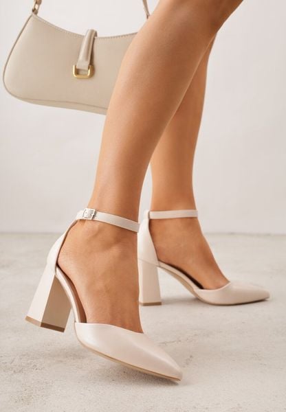 Beżowe Czółenka na Słupku w Klasycznym Stylu ze Szpiczastym Noskiem Zelelle