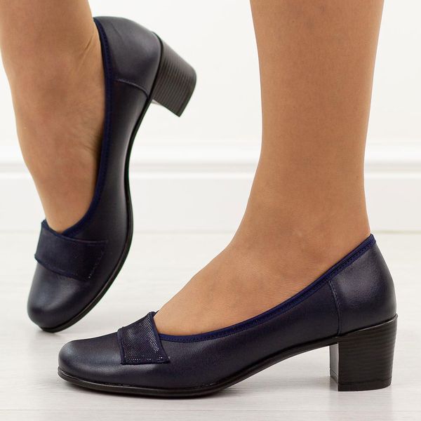 Granatowe skórzane Polskie czółenka damskie na obcasie Gregors 1048