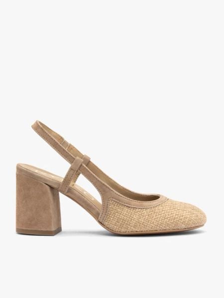 Beżowe czółenka z tkaniny i skóry