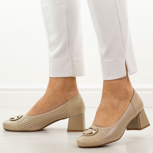 Beżowe ażurowe czółenka damskie na obcasie M.Daszyński Sa281-5