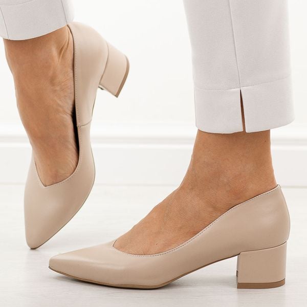 Beżowe s128 skórzane Polskie czółenka damskie na obcasie Prestige 2235/obl