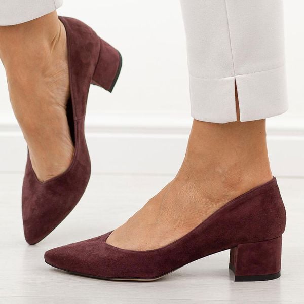 Śliwkowe zamsz skórzane Polskie czółenka damskie na obcasie Prestige 2235/obl