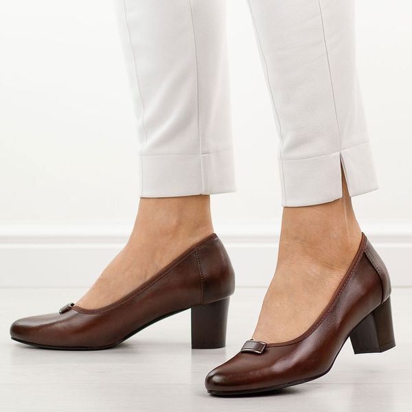 Brązowe czółenka damskie na słupku Vinceza 58622
