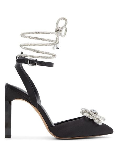 – zapięcie: sprzączka- noski: w szpic- detale: ozdobne wiązanie, połyskujące elementy- forma obcasa: blokowy- podeszwa: antypoślizgowa