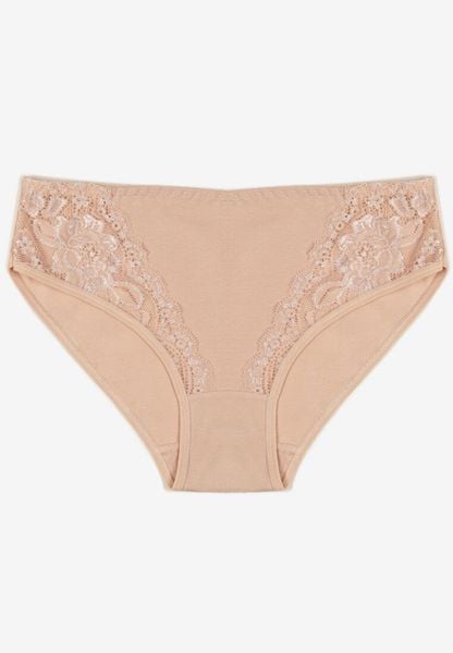 Beżowe Majtki Figi z Bawełny z Ozdobną Koronką Ersenlia