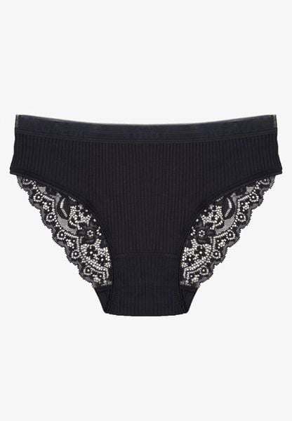 Granatowe Bawełniane Majtki Figi z Prążkowanej Tkaniny z Koronką Erqelia