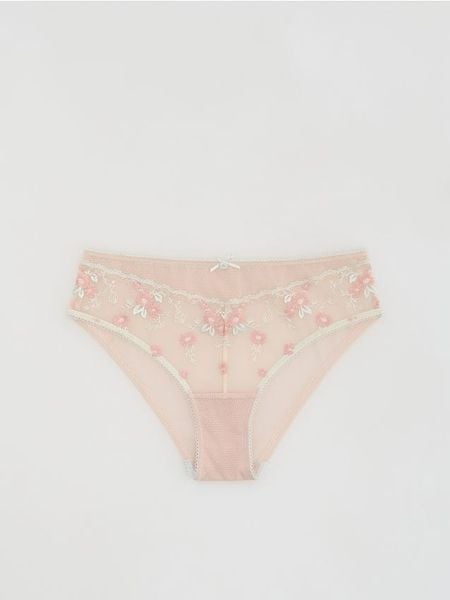 Majtki typu figi, wykonane z siateczki z haftem.