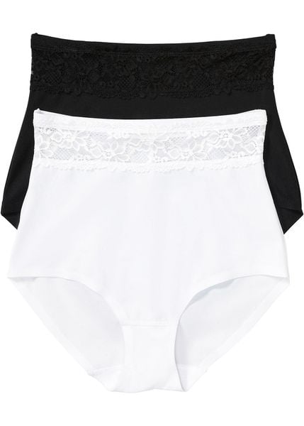Figi panty shape o lekkim stopniu modelowania sylwetki zdobione koronkową bordiurą. Figi panty shape z lekkim stopniem modelowania sylwetki, kształtujące piękny brzuch i biodra. Z ozdobną koronką w talii. W praktycznym zestawie 2 szt.
