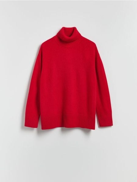 Golf o swobodnym kroju, wykonany z dzianiny z wełną.