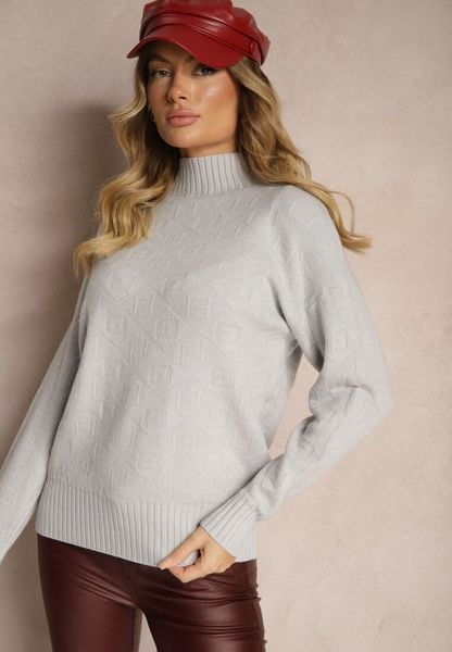 Jasnoszary Golf Sweter z Tłoczeniem i Ściągaczami Melovira