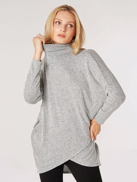 – kołnierz: golf- krój rękawów: nietoperz- krój: oversized- wzór: melanżowy