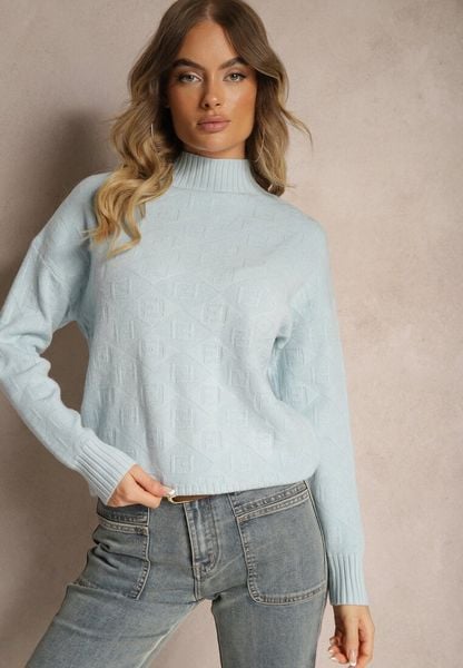 Jasnoniebieski Golf Sweter z Tłoczeniem i Ściągaczami Melovira