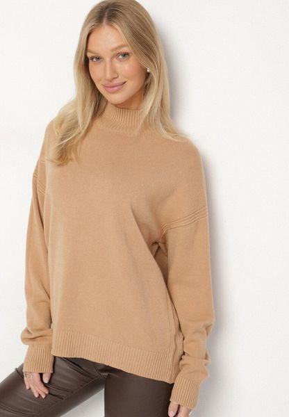Ciemnobeżowy Golf z Metalicznymi Guzikami Aderlia