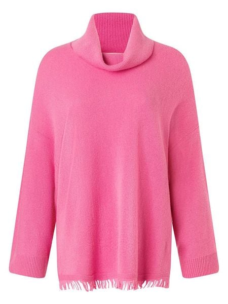– czysta wełna Merino- kołnierz: golf- dolny brzeg: z rozcięciem- detale: frędzle- krój: luźny- look: jednokolorowy