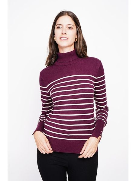 – kołnierz: golf- detale: ozdobne guziki- krój: prosty- wzór: paskiWskazówka: Na metkach odzieży tej marki znajdują się rozmiary francuskie. Rozmiarówka została przez nas przeliczona. Podane do wyboru warianty rozmiarów odpowiadają standardowym europejskim rozmiarom konfekcji. Prosimy zapoznać się z zamieszczonym objaśnieniem rozmiarów.