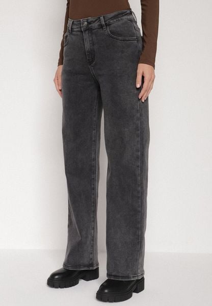 Szare Szerokie Jeansy z Wysokim Stanem Mevicania