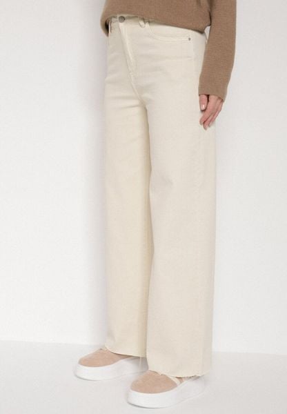 Jasnobeżowe Jeansy o Szerokim Fasonie z Wysokim Stanem i Surowymi Krawędziami Cattia