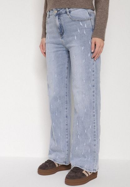 Jasnoniebieskie Bawełniane Szerokie Jeansy z Wysokim Stanem i Przetarciami Feladriel