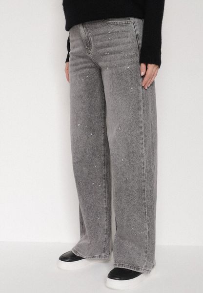 Szare Szerokie Jeansy z Wysokim Stanem Zdobione Błyszczącymi Drobinami Isabela