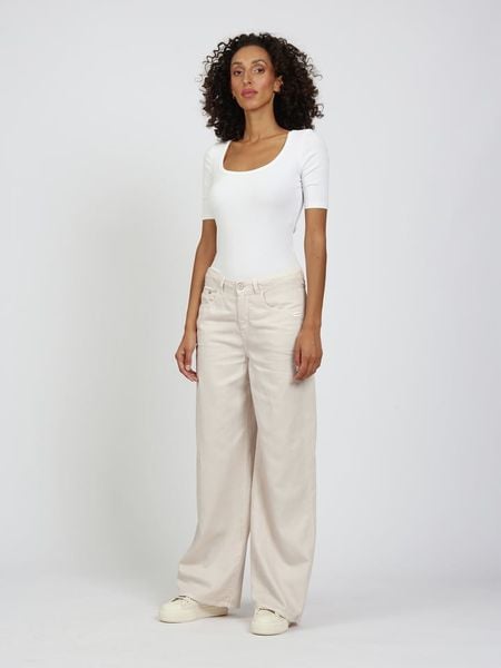 – wysokość pasa: high waist- fason: comfort fit- krój nogawek: szeroki- szlufki na pasek: tak- zapięcie: guzik i suwak- kieszenie: 5 klasycznych- przetarcia: tak