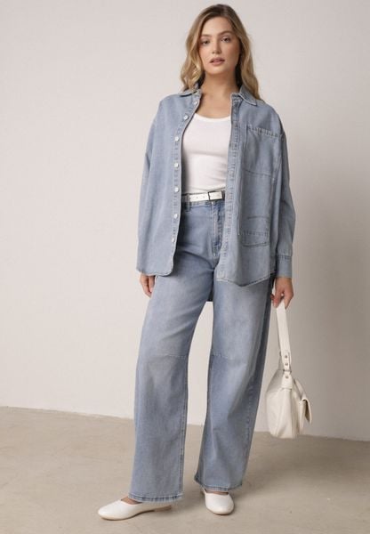Niebieskie Elastyczne Jeansy z Bawełną o Szerokim Kroju z Wysokim Stanem Yelovia
