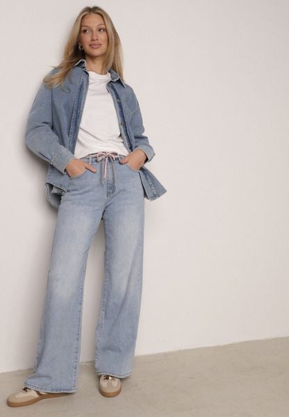 Niebieskie Jeansy z Bawełną o Szerokim Kroju z Wysokim Stanem i Sznurkowym Paskiem Ianaia