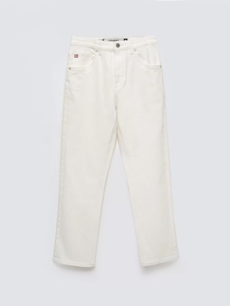 Jeansy damskie z prostą nogawką białe Avril Cropped 818