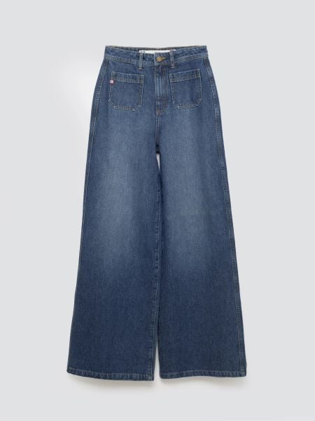 Jeansy damskie z szeroką nogawką niebieskie Celin 492