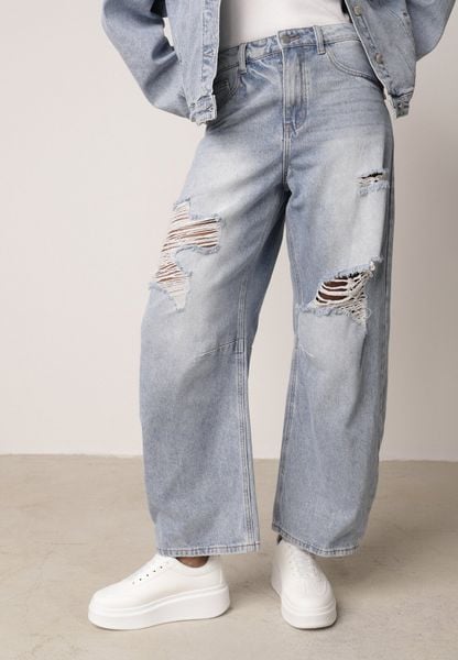 Odkryj jeansy z bawełny i wiskozy o kroju balloon z wysokim stanem i dziurami . Fason na suwak i guzik łączy klasykę z nowoczesnym stylem, co czyni je idealnym wyborem do kapsułowej szafy. Bawełniany materiał zapewni Ci komfort. Dzięki swobodnemu krojowi ze wsuwanymi kieszeniami będą doskonałym elementem codziennych stylizacji. Połącz je z prostym t-shirtem oraz […]
