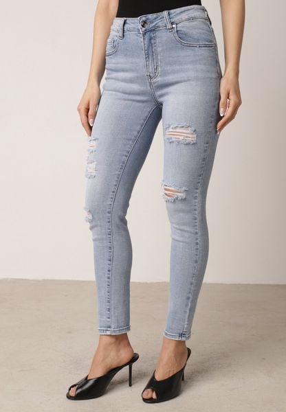 Niebieskie Bawełniane Jeansy o Kroju Slim z Przetarciami Elledima