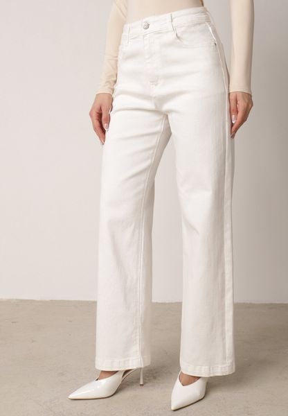Linia: Standard, Fason: Szerokie, Stan: High waist, Długość nogawek: Długie, Wzór: Gładkie, Materiał: Tkanina, Sezon: Letni, Rozciagliwość materiału: Średnia, Rozmiarówka: Typowa, Kod produktu: 404706, Kolor: Biały