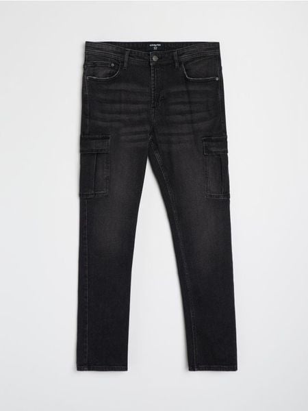 Sinsay – Jeansy cargo z efektem sprania – czarny –