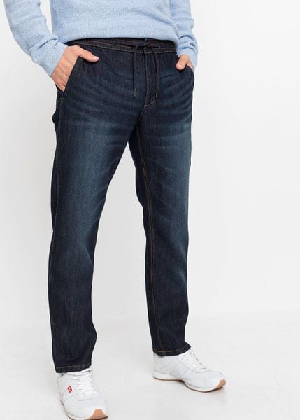 Lekkie jeansy ze stretchem z gumką w talii, regular fit straight