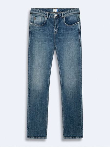 – wysokość pasa: regular waist- fason: slim fit- krój nogawek: wąski- szlufki na pasek: tak- zapięcie: guzik i suwak- kieszenie: 5 klasycznych- naszywki: skórzane- przetarcia: tak