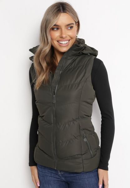 Ciemnozielona Kamizelka Pikowana Zapinana na Suwak z Kapturem i Kieszeniami Fevenella